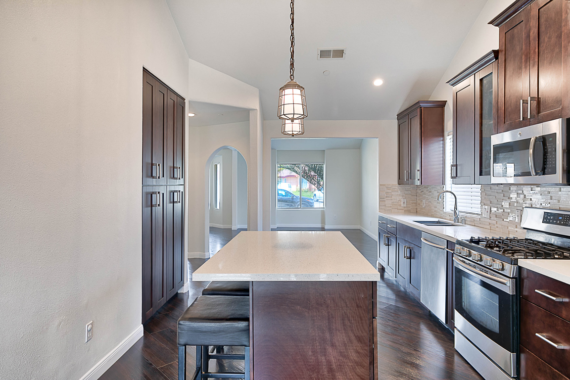 Great 3 bedroom home on a cul-de-sac in Sylmar. Open floor plan, wood laminate floors throughout (tile in bathrooms), freshly painted, upgraded beautiful kitchen with stainless steel appliances, including refrigerator and large island. Flat screen and washer & dryer included. Gas fireplace. 2 car garage. Large yard with covered patio. Close to all major freeways, 210, 118 and 405 frwy.