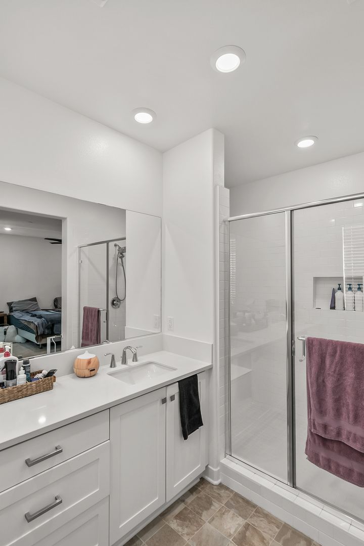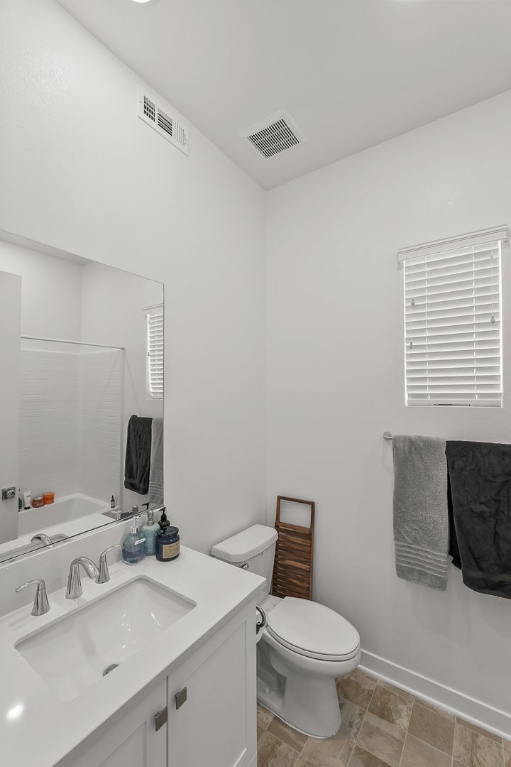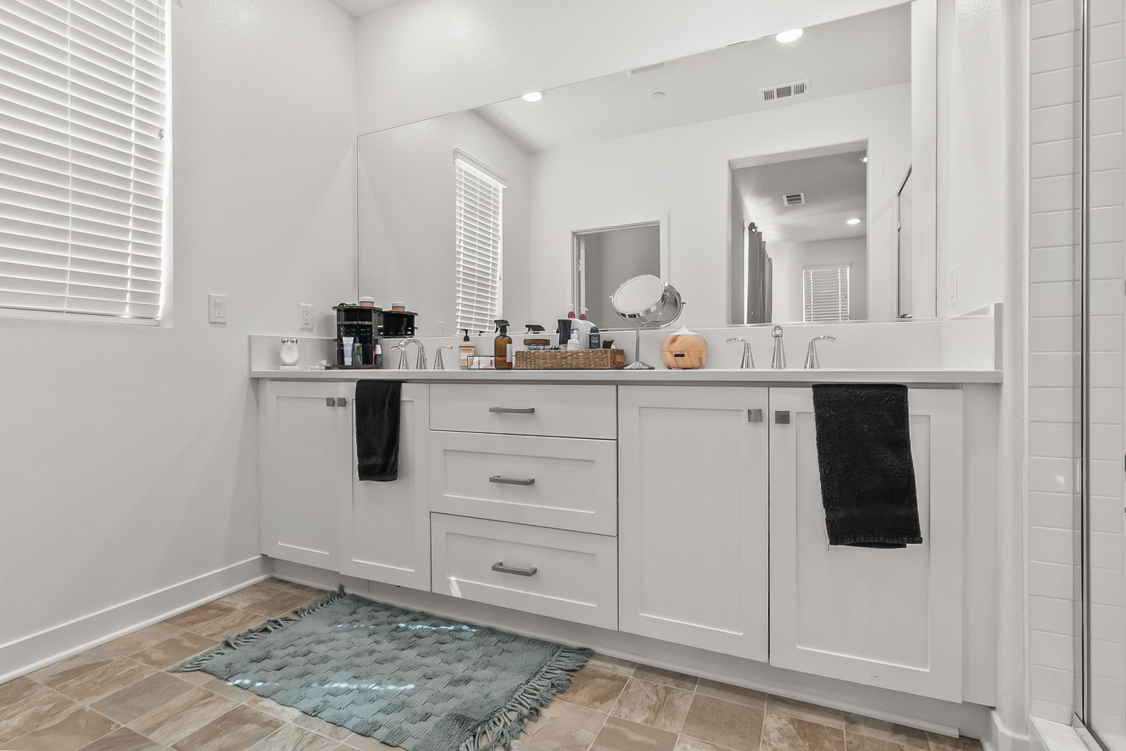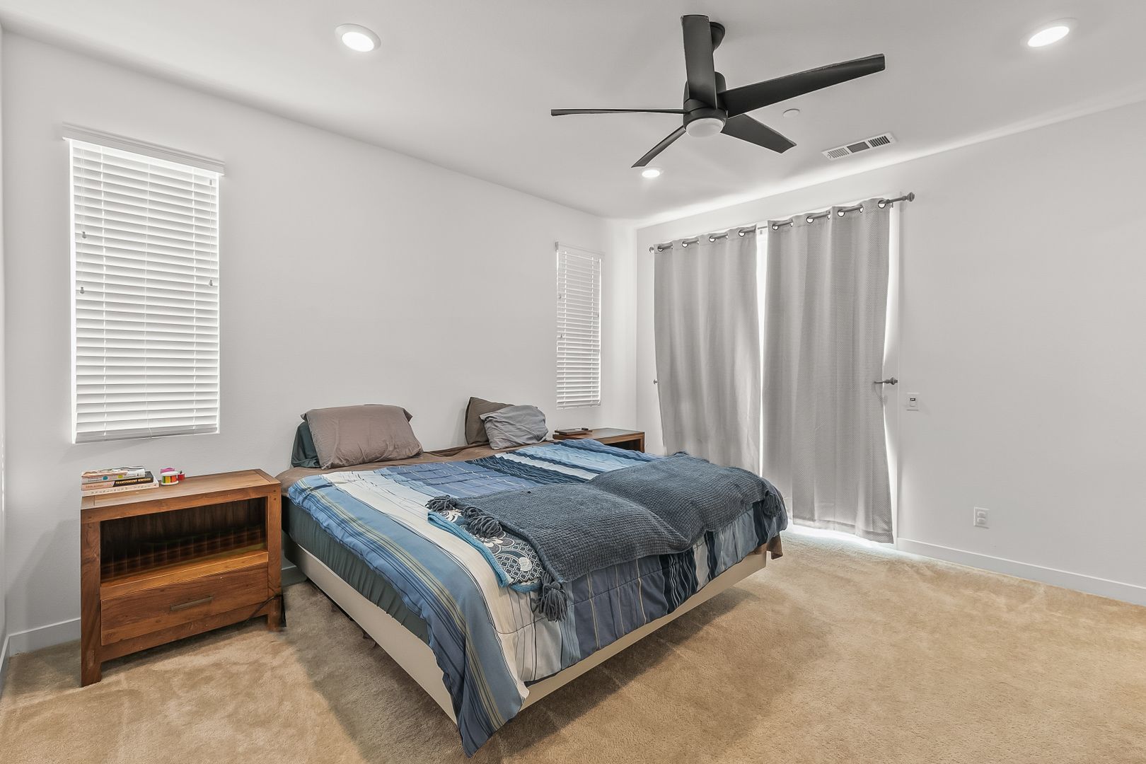 Welcome to this exquisite modern townhome nestled in the Tulip Community by Lennar, situated in the vibrant Valencia Five Point neighborhood! Step into this newer construction three-story townhome that boasts contemporary elegance and a turnkey condition. With attention to detail and numerous upgrades, this residence features 3 bedrooms and 3.5 half bathrooms. As you enter, you'll discover a spacious family room complemented by an expansive outdoor balcony, providing the perfect setting for relaxation, socializing with friends, and enjoying the spectacular fireworks display at Magic Mountain during the holidays. This sought-after floor plan offers a versatile downstairs bedroom with an en-suite bath, ideal for multi-generational living, accommodating in-laws, or serving as a private office. The high ceilings and ample closet space add to the room's appeal. Ascending the first flight of stairs, you'll be greeted by a generously sized great room, perfect for hosting gatherings and entertaining guests. The impressive kitchen is a true highlight, featuring a striking center island, a walk-in pantry, under-cabinet lighting, Quartz countertops, Whirlpool stainless steel appliances, and sleek, soft-close drawers and cabinets. The next flight of stairs leads you to two additional spacious bedrooms, one of those being the luxurious primary suite. Here, you'll find a walk-in closet, a dual sink vanity, and a beautifully tiled shower. The modern finishes and sleek design elements throughout the home create an inviting atmosphere, inviting its new owner to take pride in their ownership. This townhome also offers convenient amenities such as direct access to a rear-facing two-car garage with EV car charger and ample storage space. The home is ENERGY STAR® certified, featuring leased solar, a tankless water heater, a smart thermostat, and a smart garage system. Embrace the lifestyle offered by the state-of-the-art Five Points Valencia planned community, which provides residents with world-class parks, scenic walkways, a community center, refreshing pool, and engaging playground. Additionally, proposed potential future plans include a library, an elementary school, parks, and greenbelts. Don't miss your opportunity to own this stunning, move-in-ready townhome that seamlessly blends modern sophistication with convenience and comfort. This will undoubtedly be a great place to call HOME!